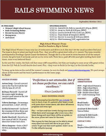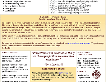 The two-page newsletter was recently redsigned. It shares information about all Rails Swimming programs so it’s a great way to learn more about each program.