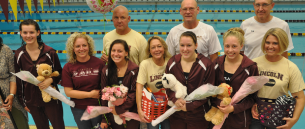 The Lincoln Girls Swim Team sent their seniors off with dominant win Tuesday, beating cross town rival East, 112-64. Seniors Abby Harrison, Alex Bennett, Emilie Skartvedt and Olivia Simpson were honored at the break for their years of dedication to the Lincoln program, and we wish them the best of luck the rest of the season and in the future!