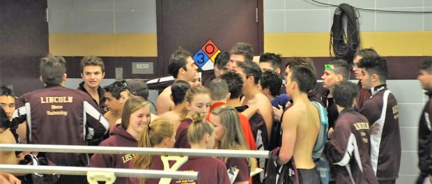 The Rails Men’s team won again in a double dual meet on Tuesday (12/1) vs. NCMP and Oskaloosa. The victory against strong NCMP and Osky squads puts the guys one step closer to achieving the goals they have this season. With the biggest team in over a decade, the guys really made a statement as they lined up for the national anthem, cheered for each other on deck and earned a pair of “W”s.