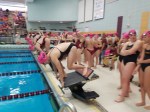 “This meet is always a special one to our team,” said Coach Weber. “And it’s not just because it’s our home invite. It’s important because people on our team have been directly impacted by this disease. Families from other teams that attend have been impacted. Families everywhere around our state have been. That’s why we give all the swimmers the special cap to where during the meet. It shows our unity in the fight against breast cancer, even while we race against each other in the water.”