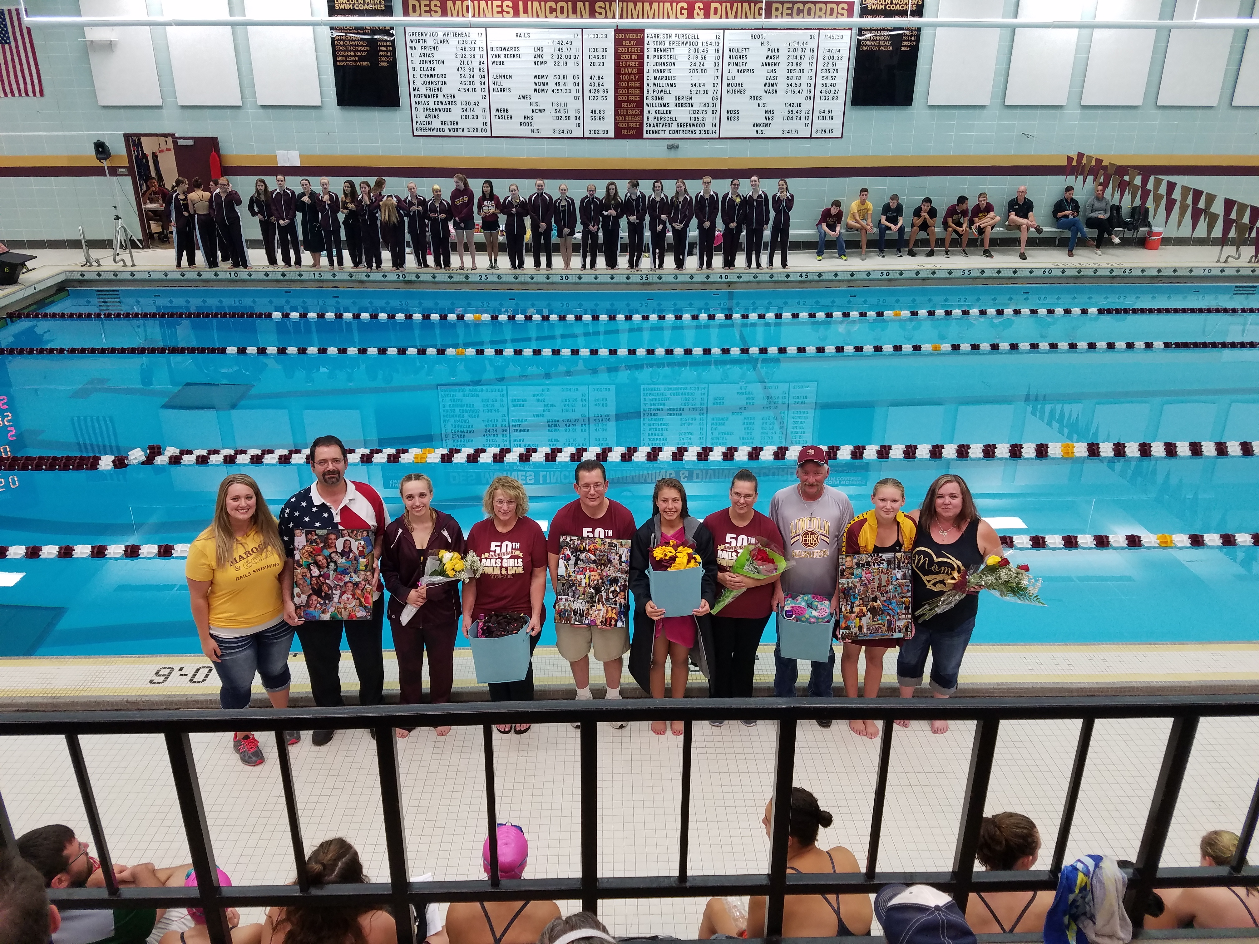 The Rails hosted their last dual meet of the season Tuesday (10/3) against Hoover. That meant it was time for Senior Night, a night when we recognize our senior swimmers and divers for all their efforts. It’s always a little bittersweet as we prepare to say goodbye to long-time team members while also being excited about where life will take them next.
