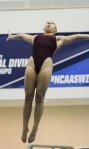 Warm-ups went well, with all three divers looking strong and crisp in their execution. At 5:00PM the meet began, with Chloe Pearson as diver number one. Soon after Haley Allen followed (5th in rotation) and then Jolynn Harris (6th in rotation). Each diver was executing even better than warm-ups and their recent conference meet, until Chloe hit a snafu with her forward double somersault, which the officials deemed incomplete.