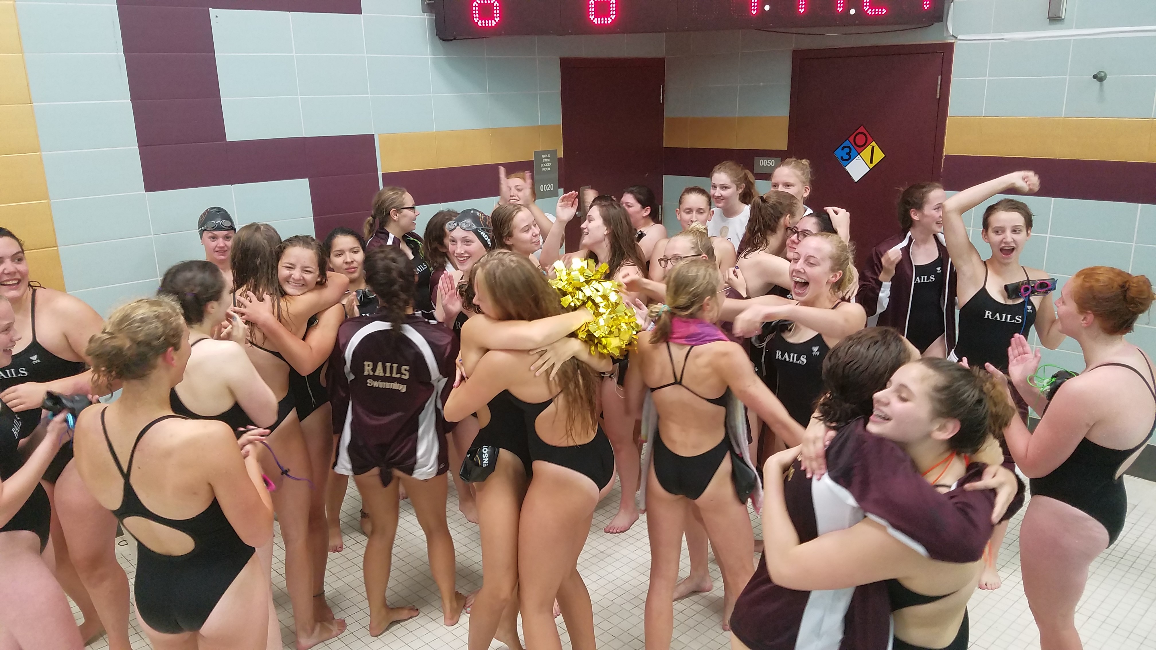 Rails Swimming and Diving team won 96-90 over the Waukee Warriors in a historic win on Thurs., Aug. 23. The victory marks the first time that the Rails have beat a major suburban school. Waukee has finished top four in the statewide power rankings three straight years.